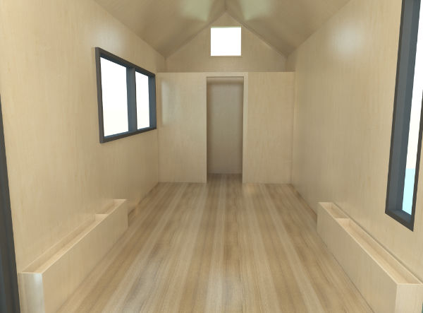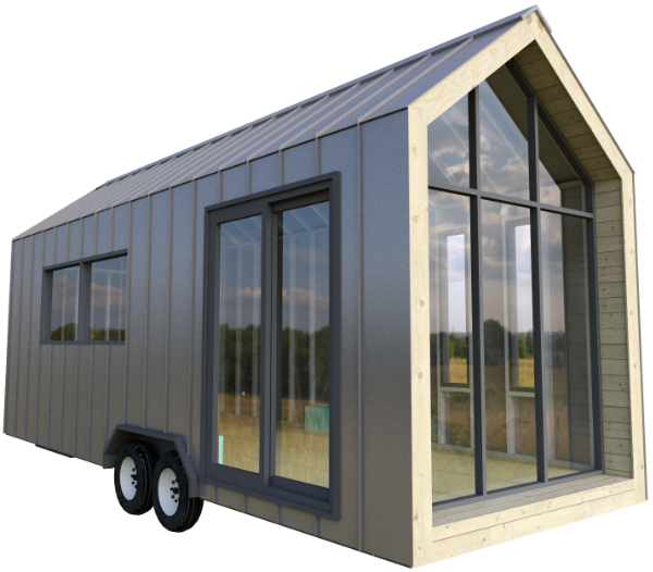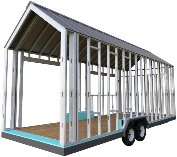 This shell Includes the above plus completely finished exterior with metal siding, standard vinyl windows, and a painted fiberglass exterior door. The inside is a blank canvas for you to complete. For those that feel confident tackling electrical, plumbing, and all interior finishes on their own.